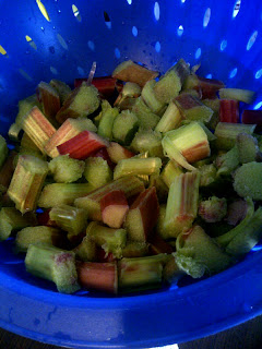 1 kg Rharaber waschen und in kleinere Stücke schneiden.